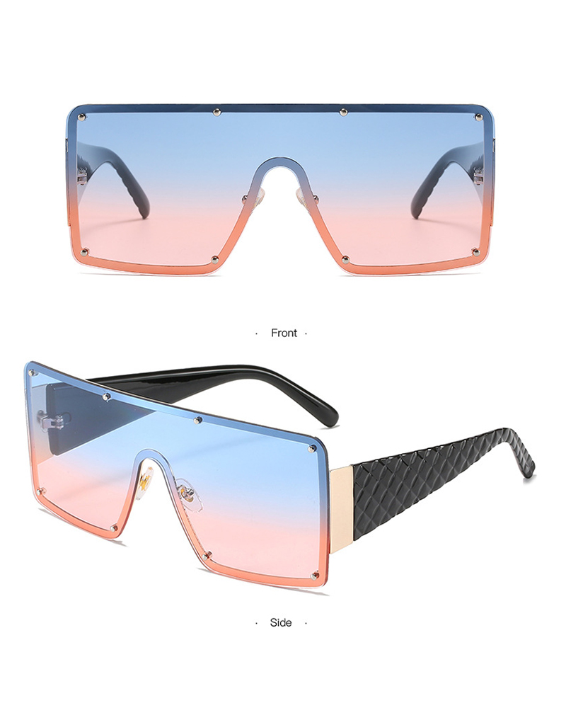 1Pair Quilted Decor Rimless Tinted Lens Sunglasses, Light blue