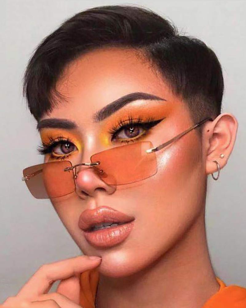 1Pair Rectangle Lens Rimless 100% UV Protection Sunglasses, Orange