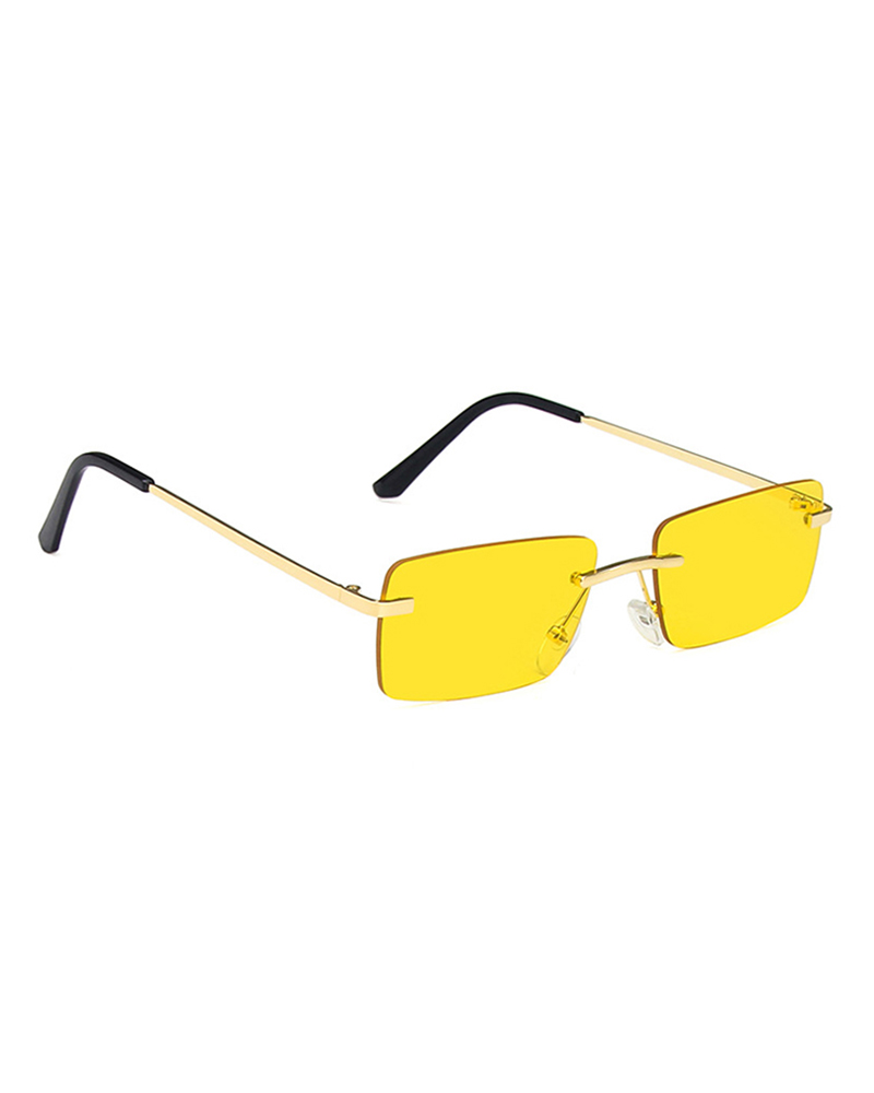 1Pair Rectangle Lens Rimless 100% UV Protection Sunglasses, Yellow