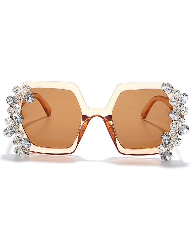 1Pair Retro Rhinestone Irregular Frame Sunglasses, Yellow