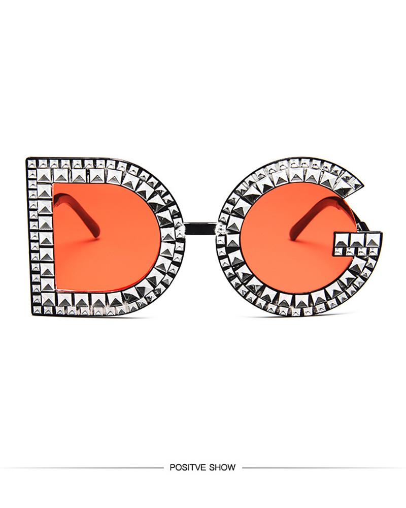1Pair Retro Rhinestone Letter Pattern Sunglasses, Style1