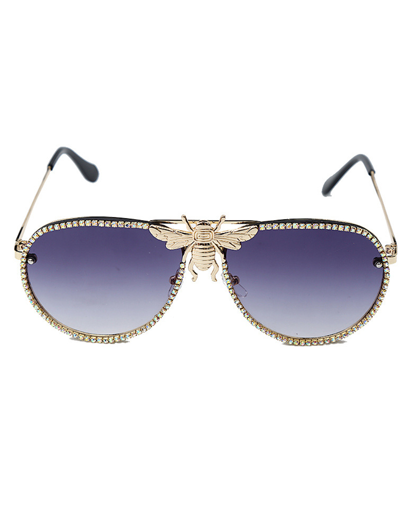 1Pair Rhinestone Bee Pattern Trendy Pilot Sunglasses, Gray