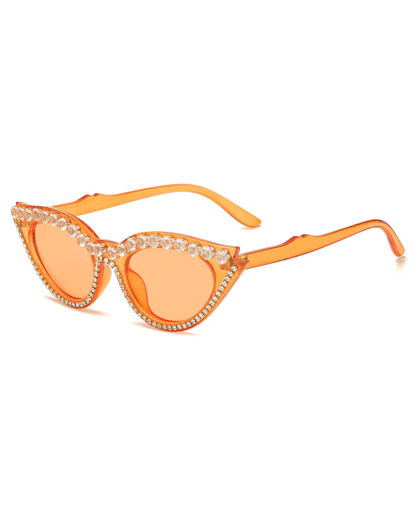 1Pair Rhinestone Cat Eye Frame Sunglasses, Orange