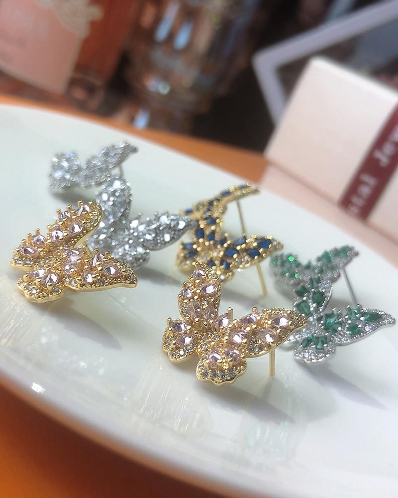 1Pair Rhinestone Decor Butterfly Pattern Earrings, Pink