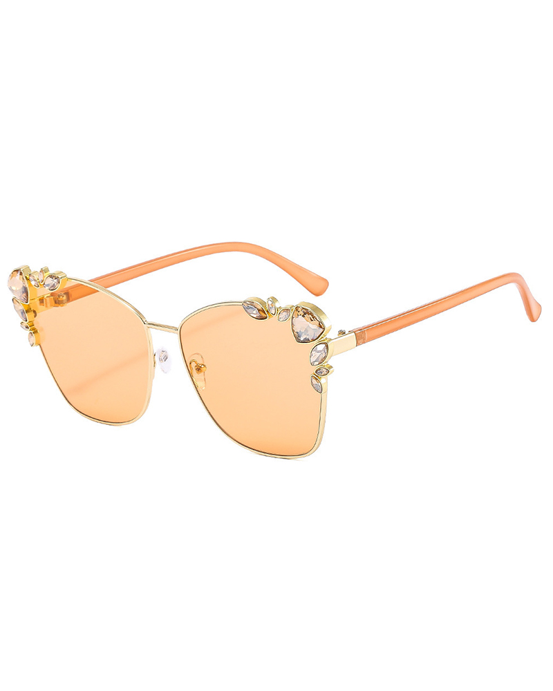 1Pair Rhinestone Decor Cat Eye Metal Frame Sunglasses, Style5