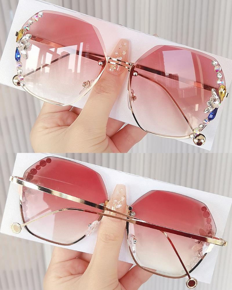 1Pair Rhinestone Decor Rimless Ombre Sunglasses, Style3