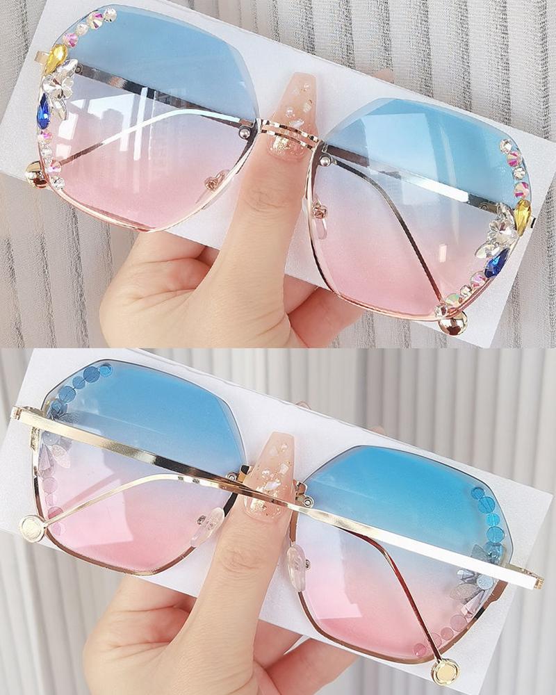 1Pair Rhinestone Decor Rimless Ombre Sunglasses, Style4