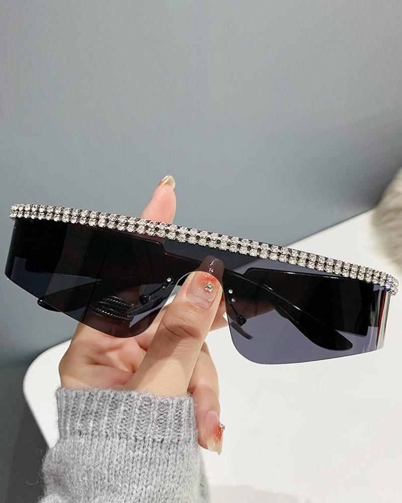 1Pair Rhinestone Decor Sports Riding Shield Sunglasses, Black