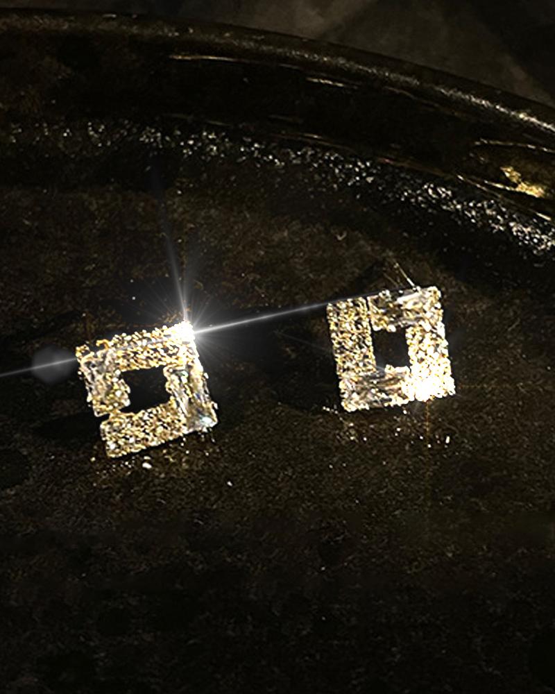 1Pair Rhinestone Decor Square Earrings, Gold