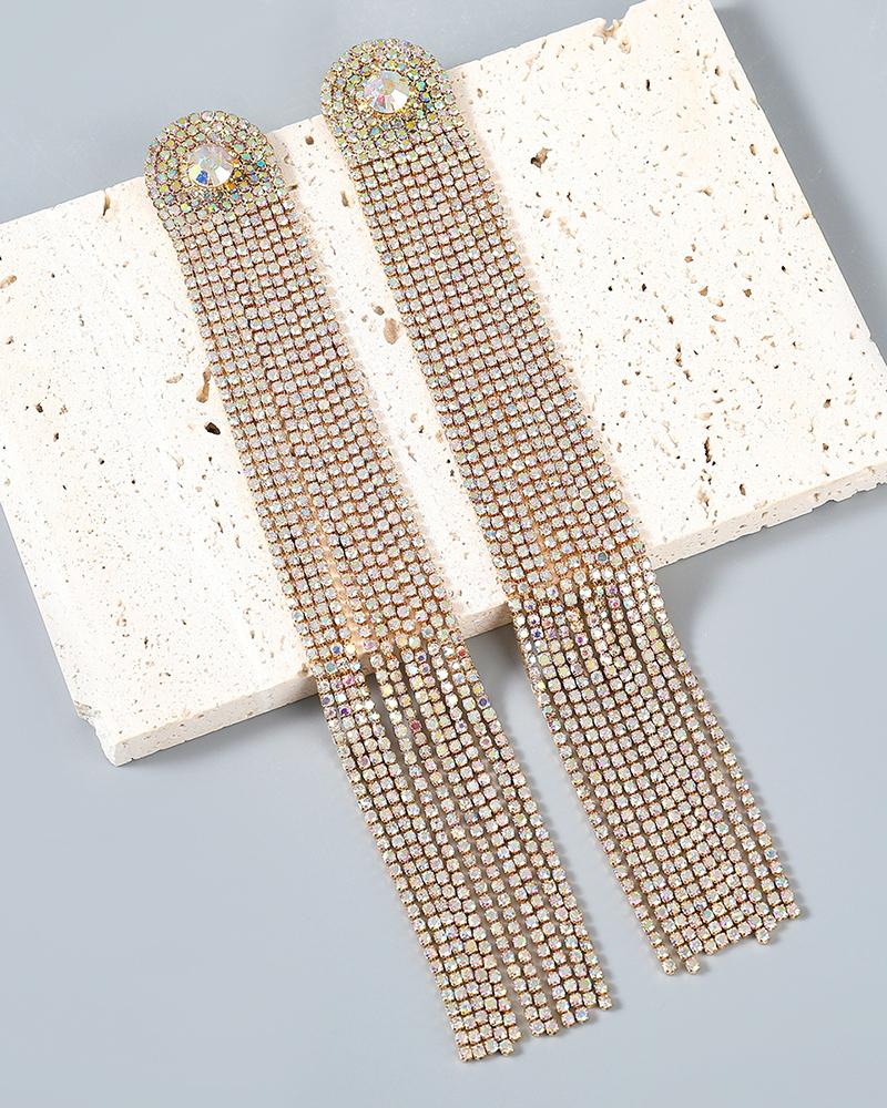 1Pair Rhinestone Decor Tassel Drop Earrings, Silver