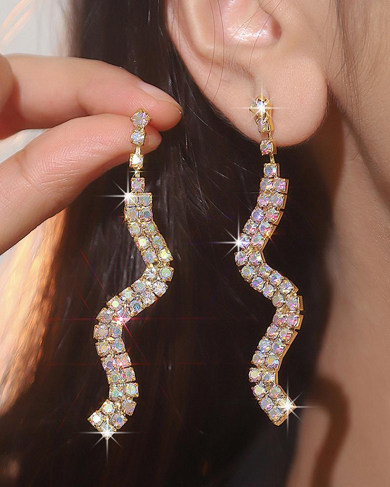 1Pair Rhinestone Geometric Dangle Drop Earrings, Pink