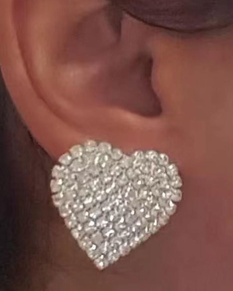 1Pair Rhinestone Heart Shaped Stud Earrings, Silver