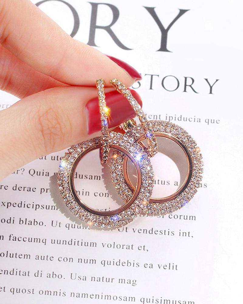1Pair Rhinestone Hoop Earrings, Pink