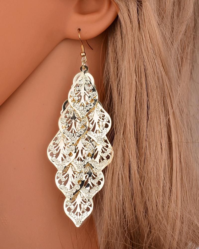1Pair Rhinestone Layered Leaf Pattern Drop Earrings, Gold