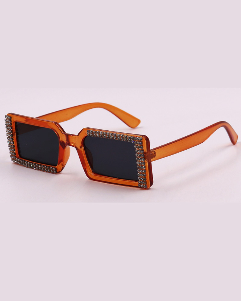 1Pair Rhinestone Rectangular Trendy Tinted Sunglasses, Orange