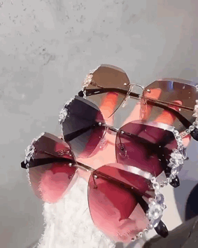 1Pair Rhinestone Rimless Frame Tinted Lens Sunglasses, Style1