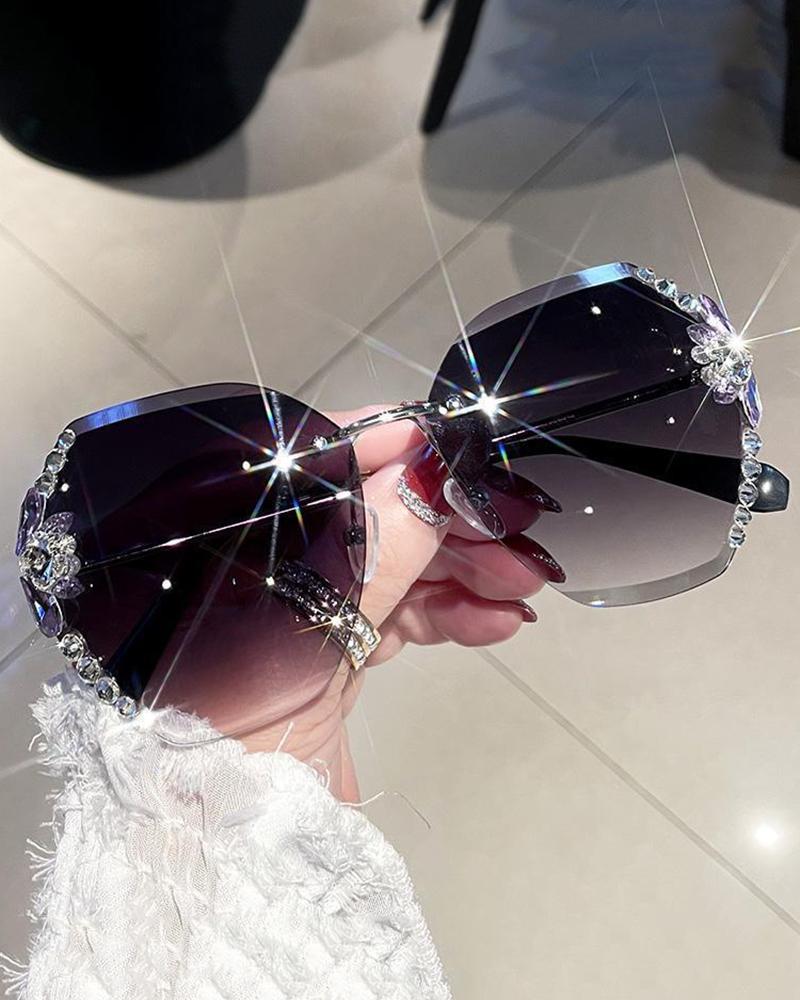 1Pair Rhinestone Rimless Frame Tinted Lens Sunglasses, Style3