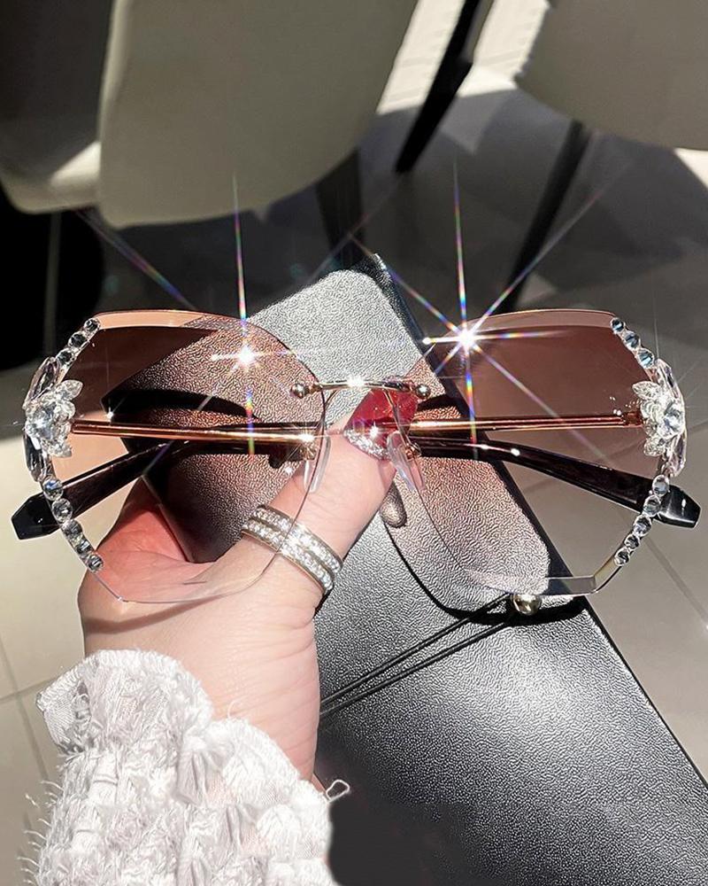 1Pair Rhinestone Rimless Frame Tinted Lens Sunglasses, Style4