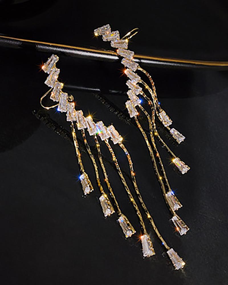 1Pair Rhinestone Tassel Design Earrings, Gold