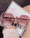 1Pair Rhinestone Tinted Lens Irregular Rimless Frame Sunglasses, Pink