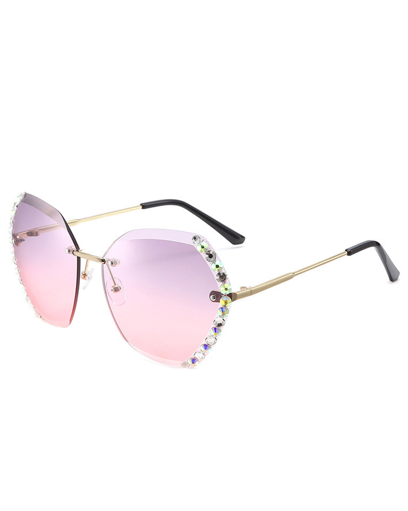 1Pair Rhinestone Tinted Lens Irregular Rimless Frame Sunglasses, Style1