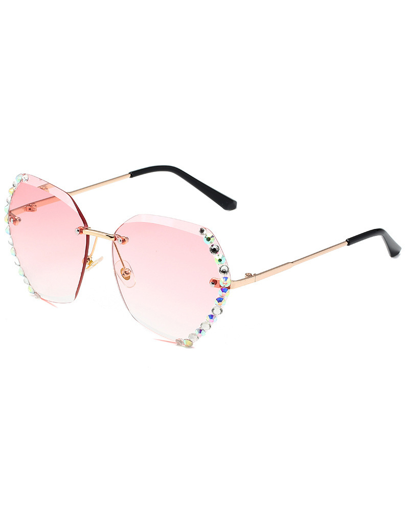 1Pair Rhinestone Tinted Lens Irregular Rimless Frame Sunglasses, Style4