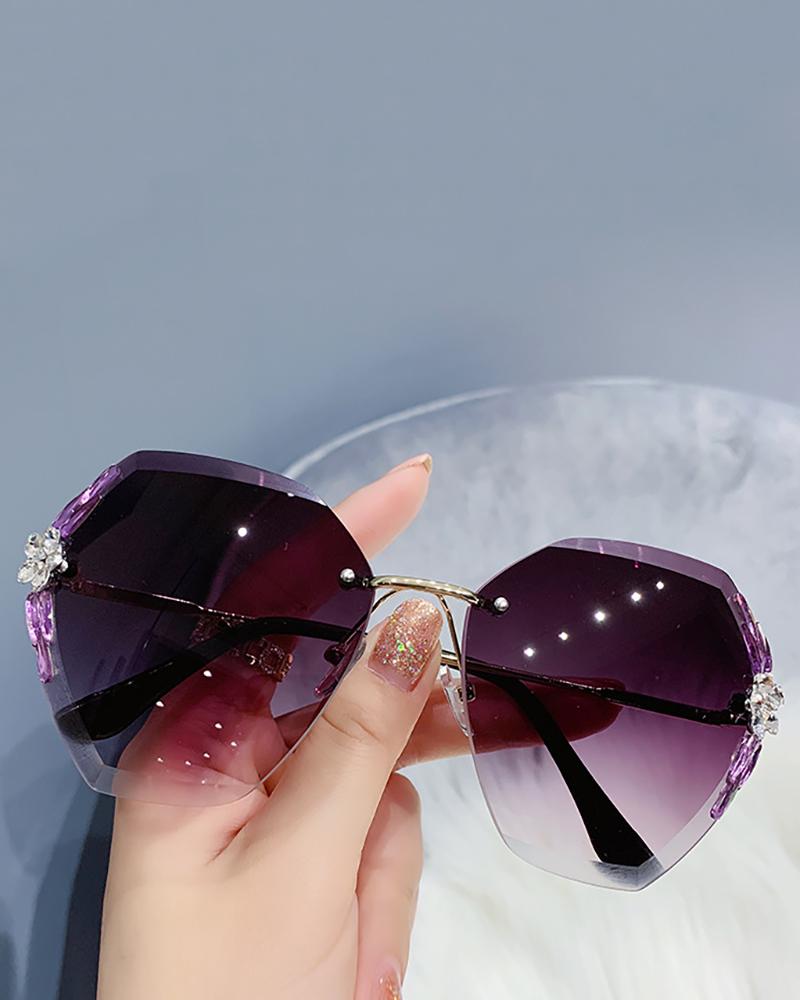 1Pair Rimless Irregular Frame Rhinestone Sunglasses, Style1