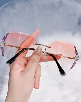 1Pair Rimless Irregular Frame Rhinestone Sunglasses, Style5