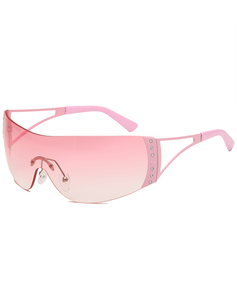 1Pair Rimless Rhinestone Tinted Shield Sunglasses, Style5