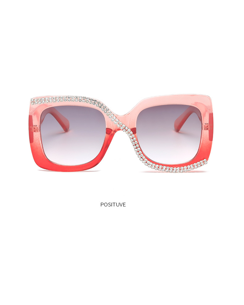 1Pair Square Frame Rhinestone Sunglasses, Pink