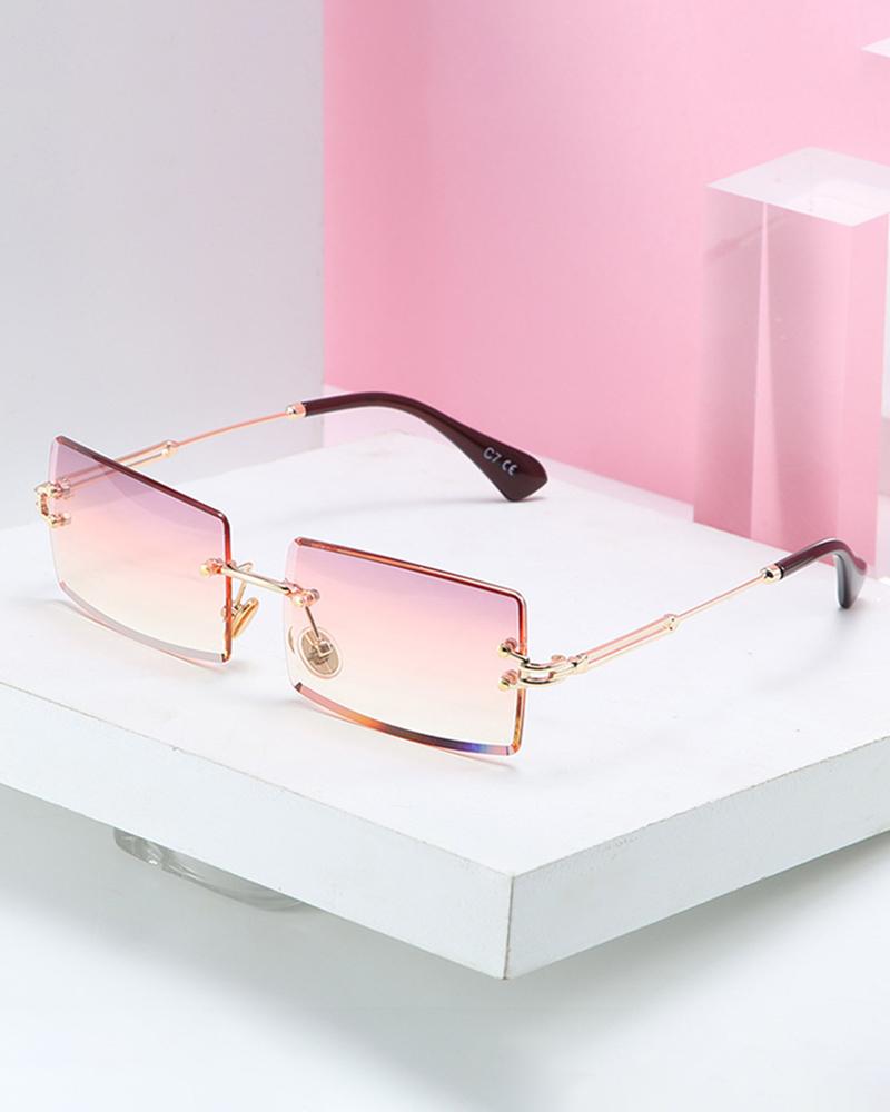 1Pair Square Rimless Tinted Lens Sunglasses, Pink