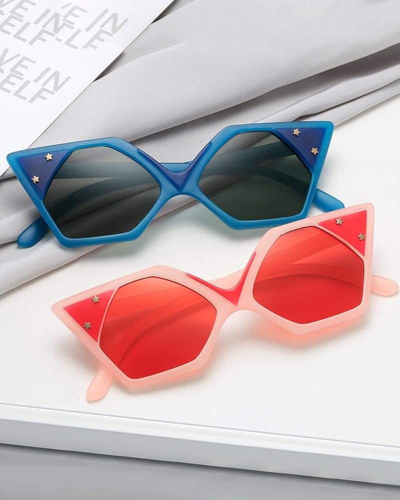 1Pair Star Studded Pattern Asymmetrical Frame Sunglasses, Red