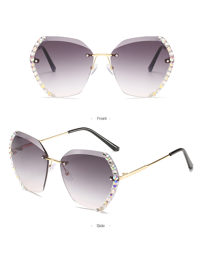 1Pair Studded Ombre Lens Rimless Sunglasses, Gray