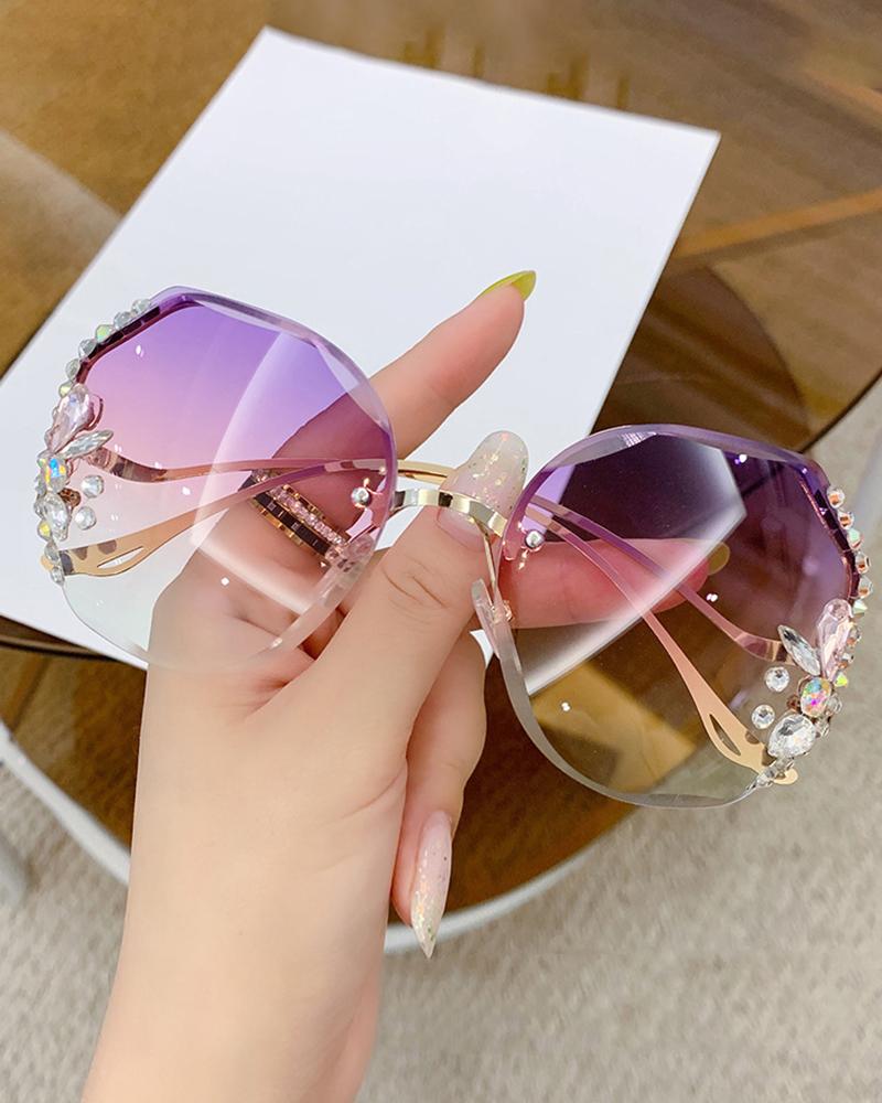 1Pair Tinted Lens Irregular Rimless Frame Rhinestone Sunglasses, Style4