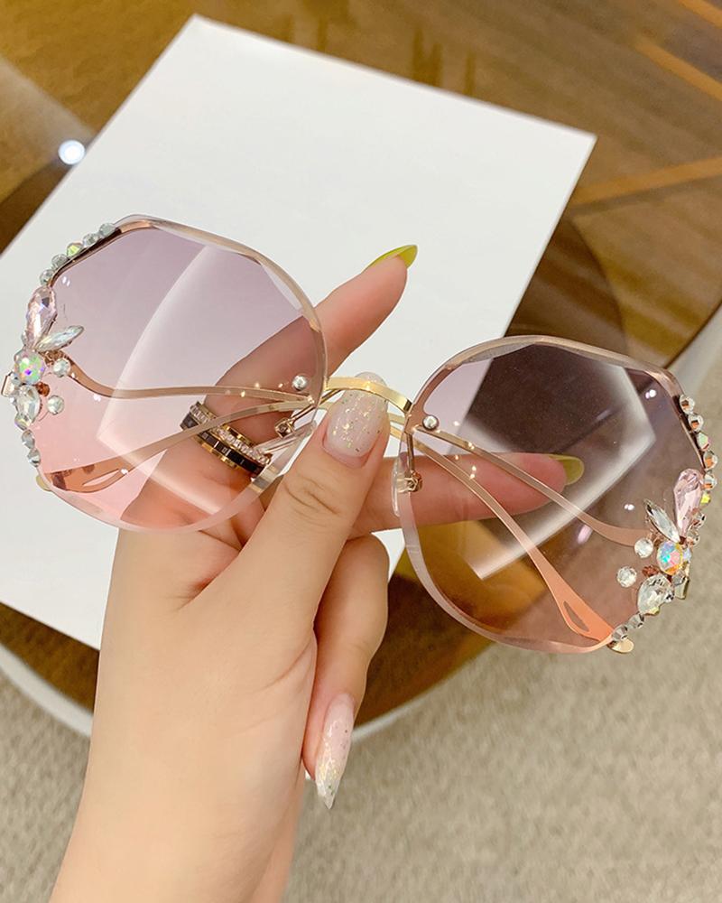 1Pair Tinted Lens Irregular Rimless Frame Rhinestone Sunglasses, Style5