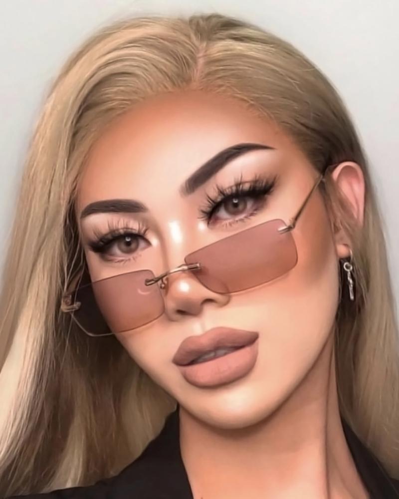 1Pair Tinted Lens Rectangle Rimless Frame Sunglasses, Brown