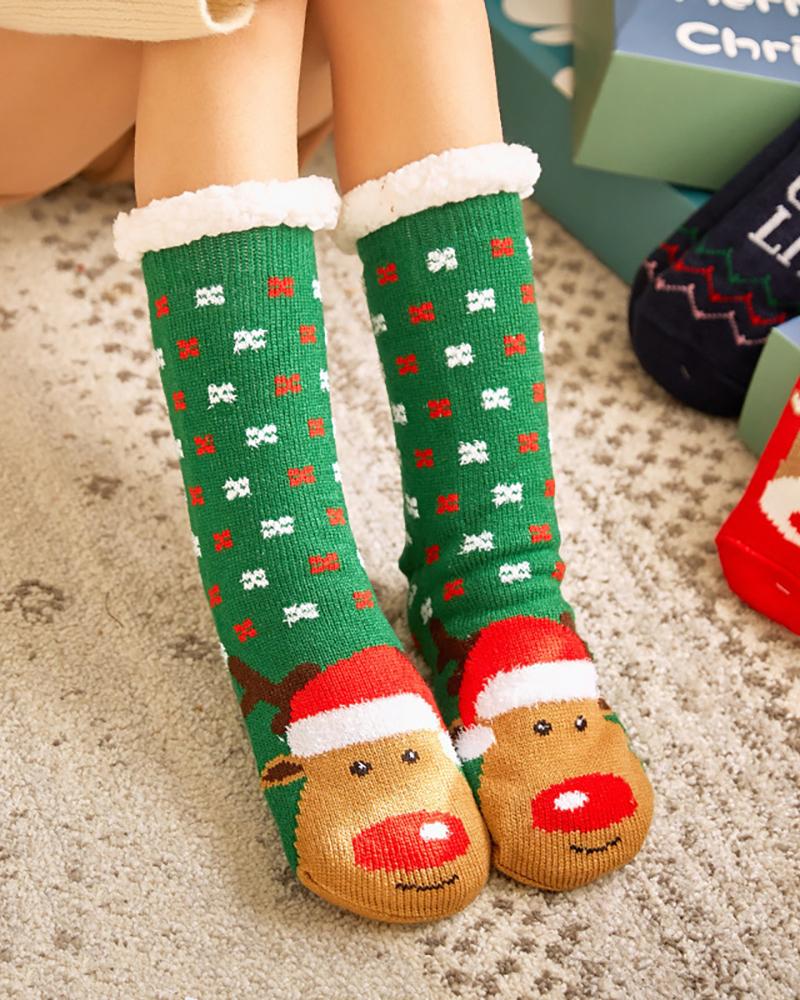 1Pairs Christmas Pattern Fluffy Socks, Green