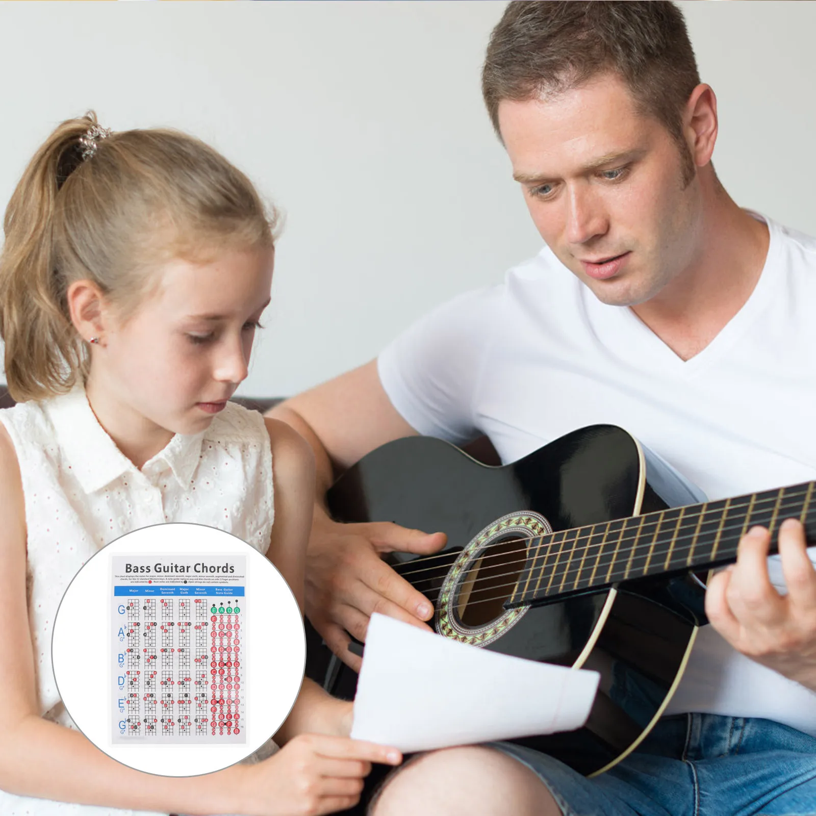 1Pcs Guitar Chord Chart Professional Practice Poster Electric Bass Learning Guide Durable Coated Paper for Beginners