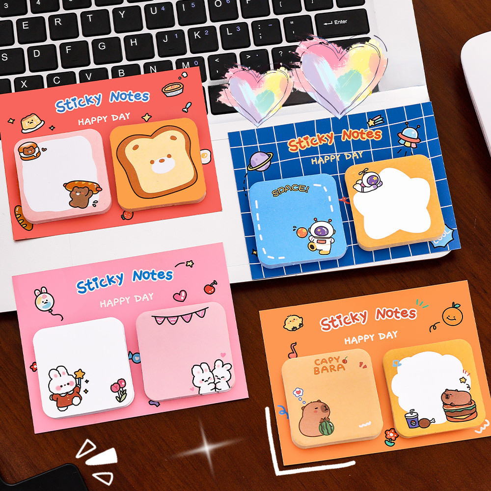 1Pcs Kawaii Cartoon Animal Sticky Notes Sticker 60Sheets Cute Rabbit Bear Capybara Astronaut Memo