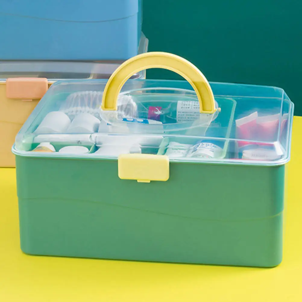 1Pcs Portable Medicine Box Household Emergency Storage Container Double Layer Large Capacity Handheld Medical Case Outdoor Use