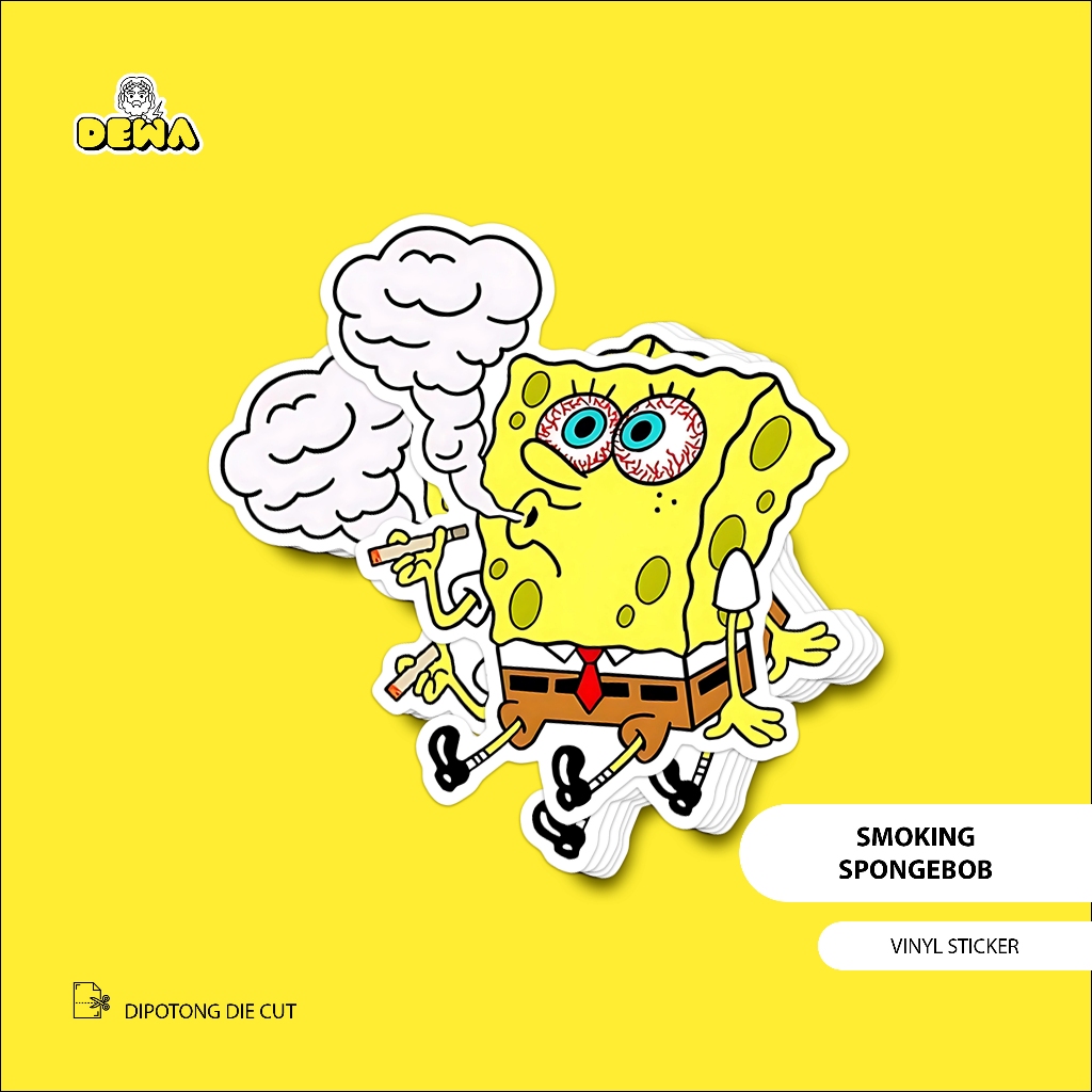 (1Pcs) Sticker Smoking Spongebob Bahan Vinyl Waterproof Stiker Laptop Diary Notebook Journal Koper