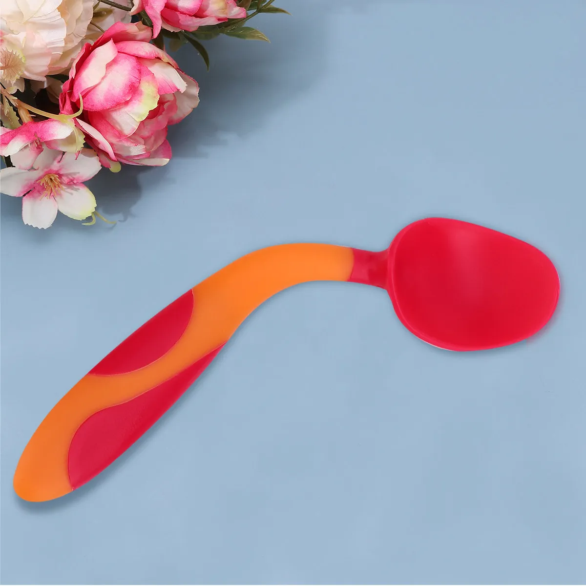 1Set Kids Fork and Spoon Set Cute Non-Slip Handle Bending Design for Toddlers Easy Grip Learning Tableware High Temperature