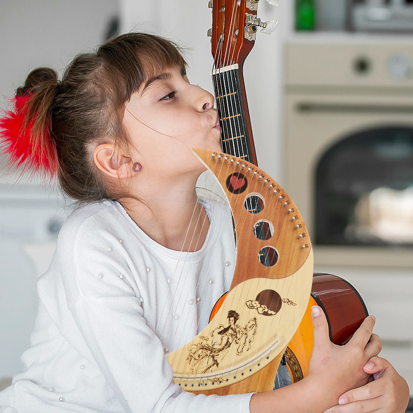 1Set Lyre Harp 19 String Wood Body Musical Instrument Small Portable Lightweight Handheld for Beginners Solid Wood