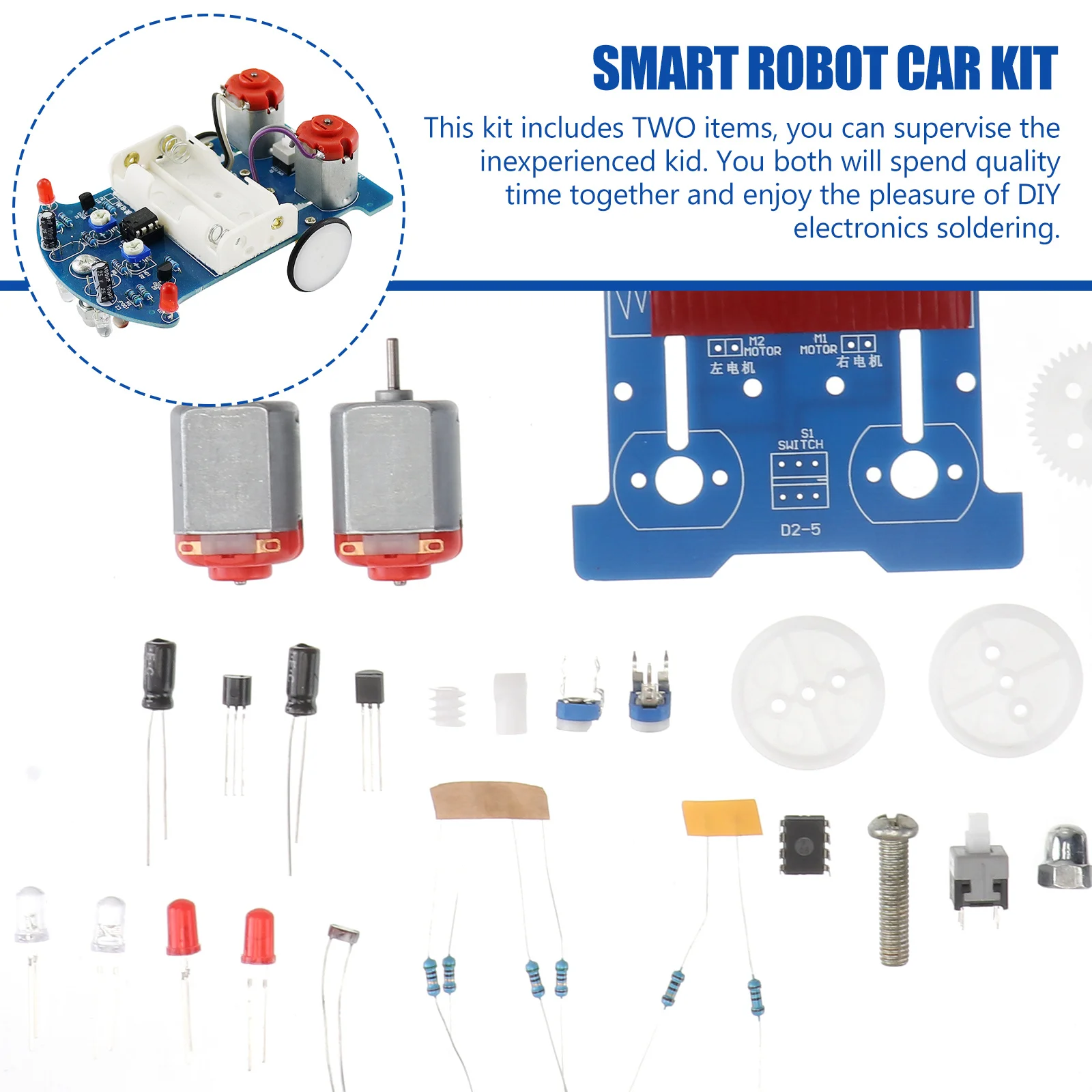 1Set Smart Car Soldering Kit DIY Robotics Line Tracking Electronic Project for Children Stem Education Fun Learning Activity Set