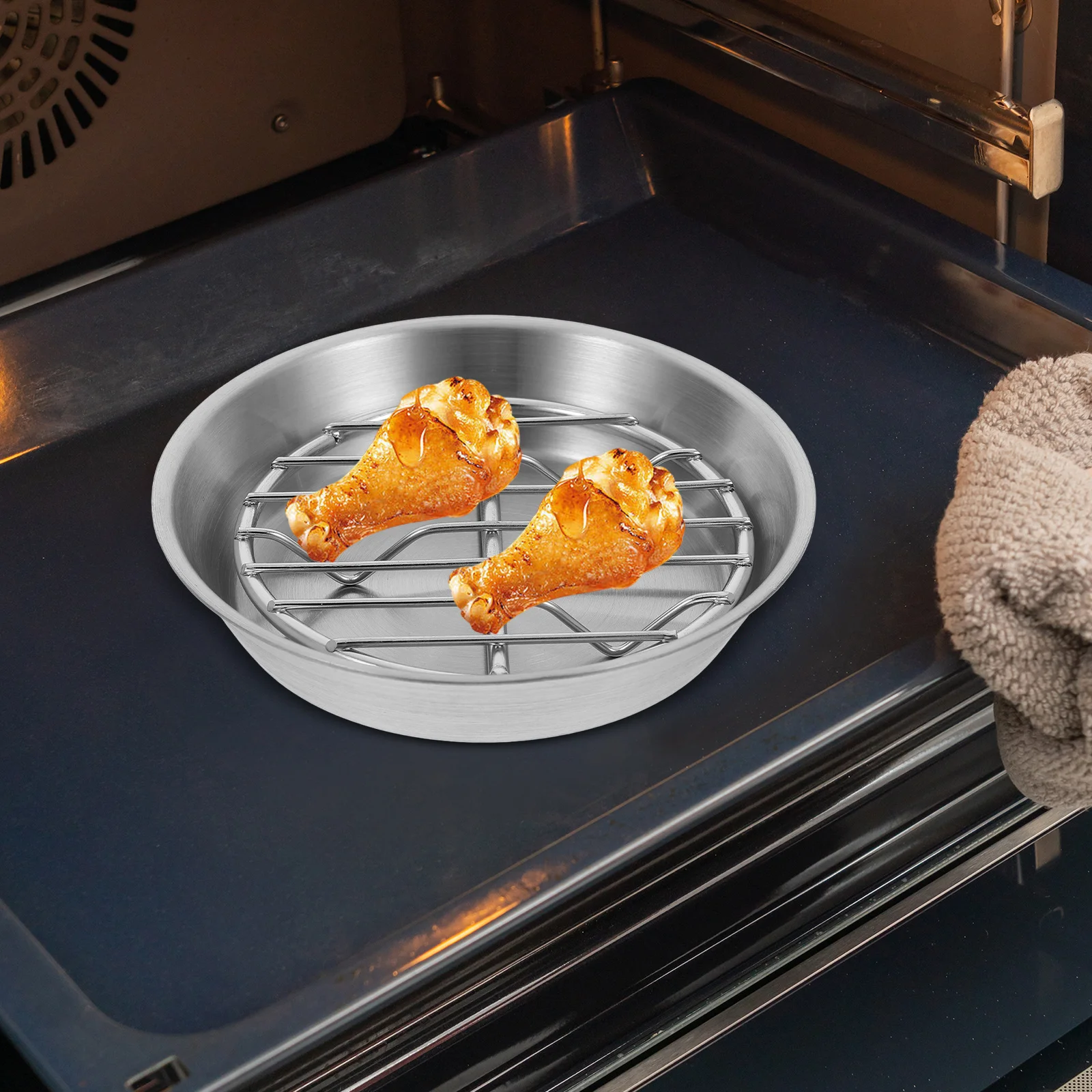 1Set Stainless Steel Baking Pan Circular Design Oil Draining Grill Cooling Rack Set Rust Resistant for Home Kitchen