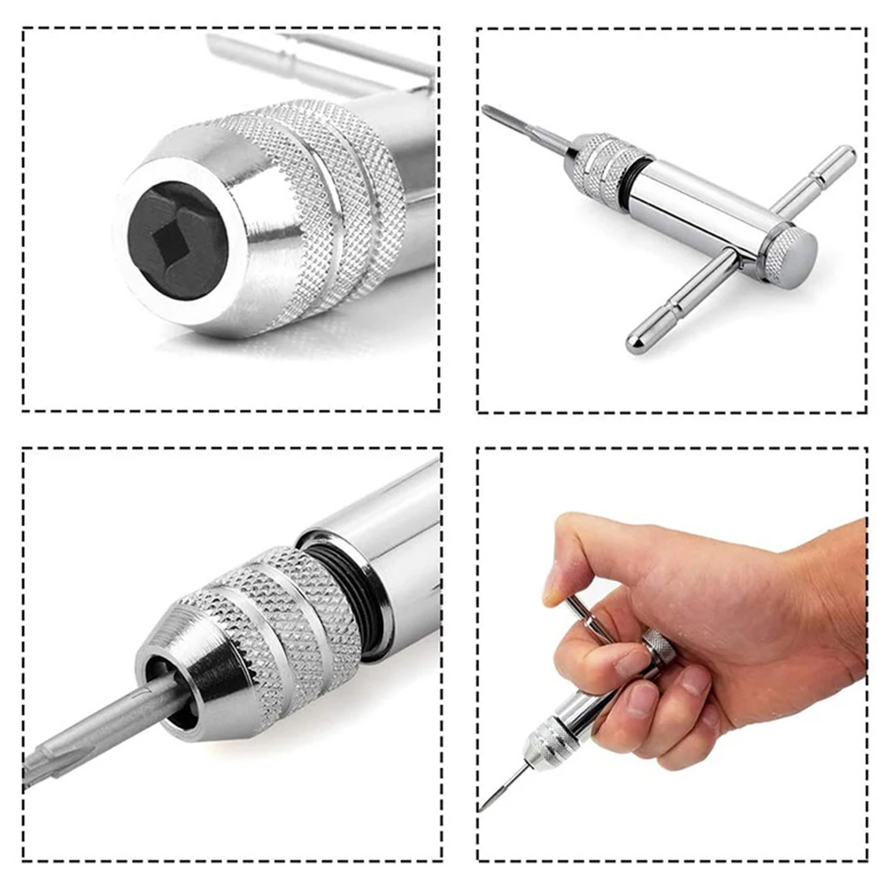 1Set Steel T-Handle Tap Wrench Adjustable Hand Tap Repair Tool for Manual Processing Workshop Maintenance
