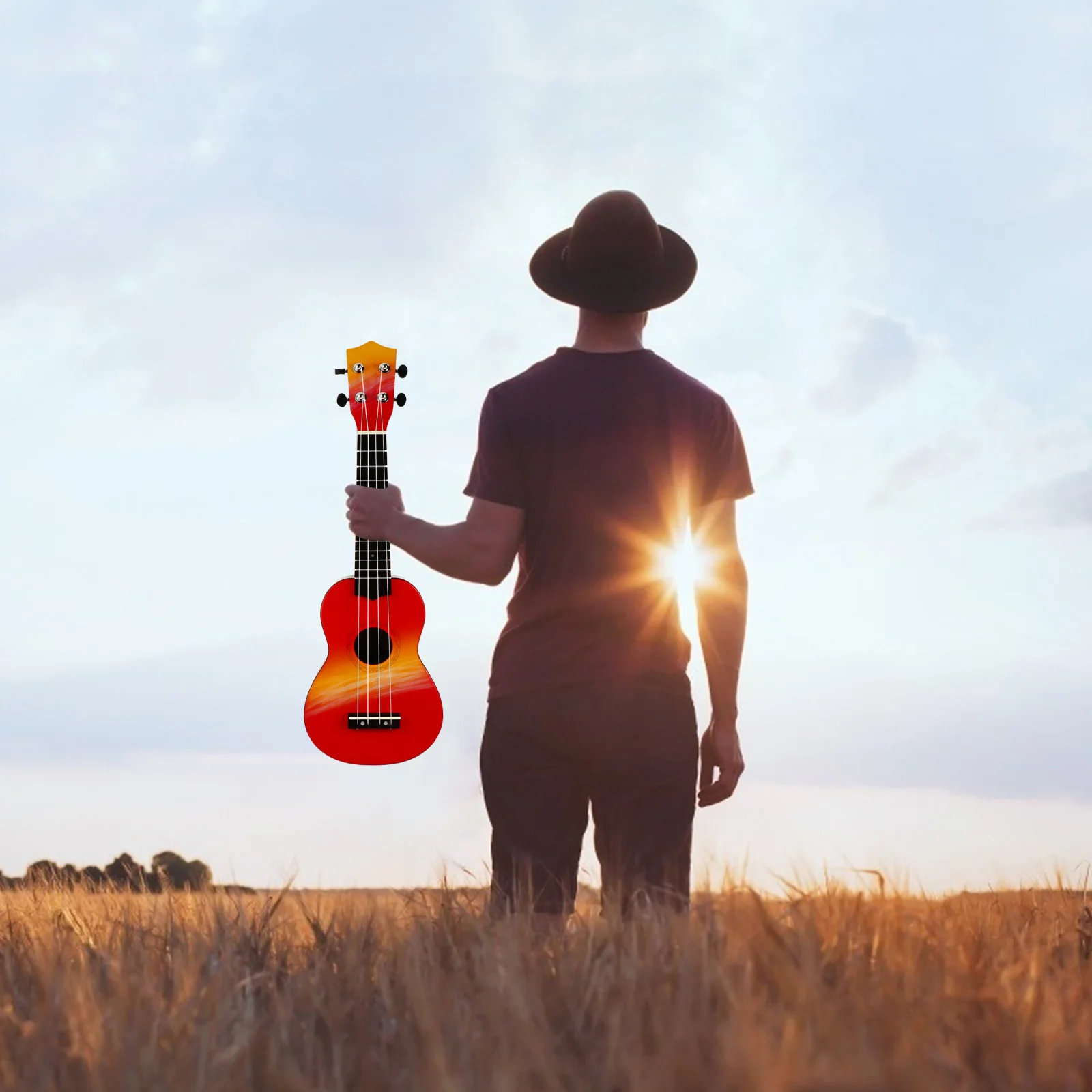 1Set Ukulele Creative Hand Drawn 21 Inches Beginner Acoustic Small Guitar Easy to Play Musical Instrument 21 Inches Ukulele