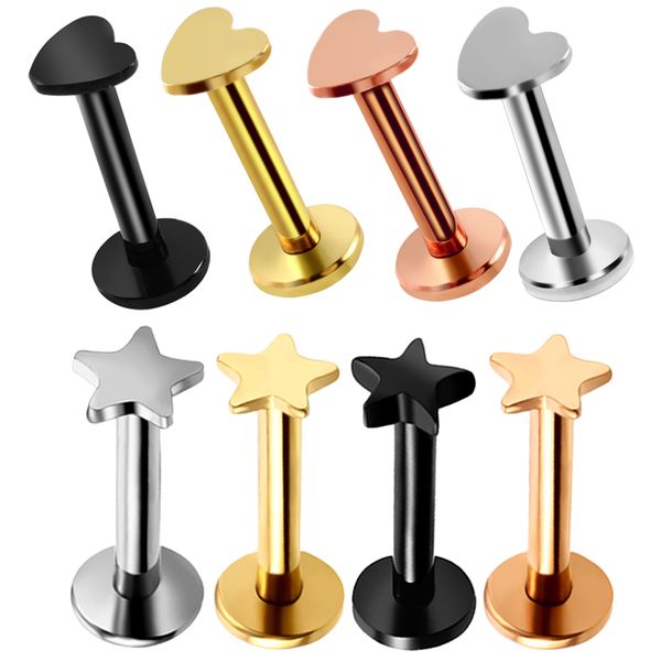 1pc 316l surgical steel heart ball moon labrets stud ring ear tragus cartilage ball lip ring earrings body piercing jewelry, Slivery;golden