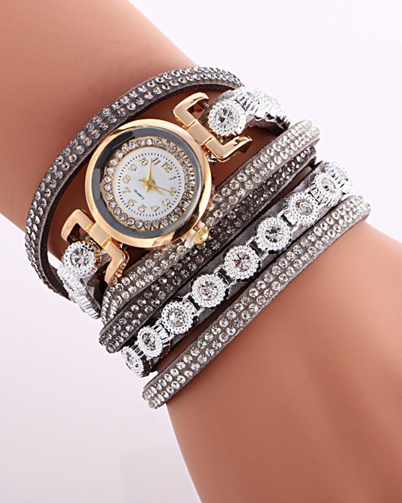 1pc Allover Rhinestone Stackable Bangle Quartz Watch, Gray