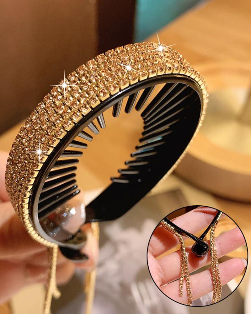 1pc Allover Rhinestone Tassel Hair Clip, Gold